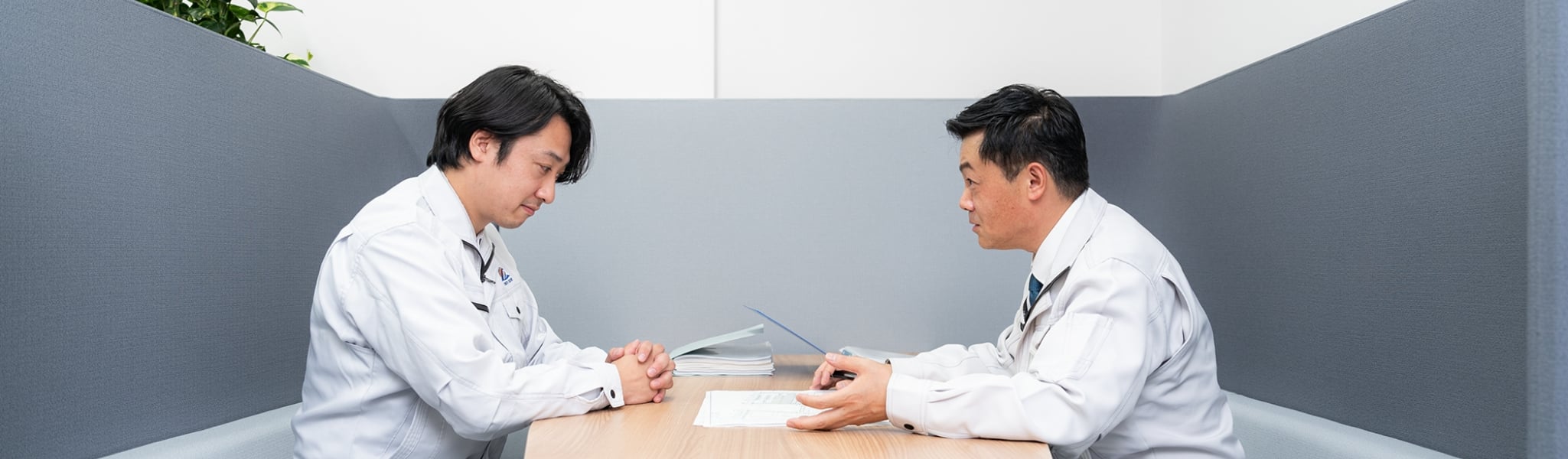 お客様の要望にしっかりとお応えするためには、現場の工事担当者の負担を少しでも軽減してあげることが大切です。そこで我々がサポートする際に重視しているのが、工事担当者との密接なコミュニケーション。こまめに話をするだけでなく具体的に内容を詰めるために、作成した書類をお互いに見ながら「ここはこうしようか」とすり合わせています。